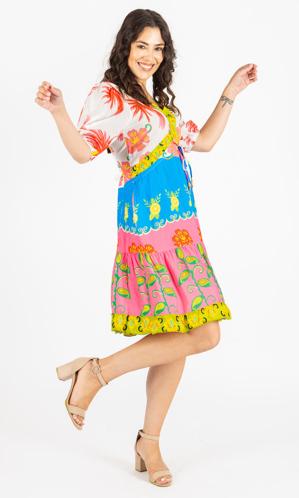 Designed for sunshine-filled days and getaway styling, this dress pairs perfectly with sandals or heels for a standout look that’s both lively and polished.