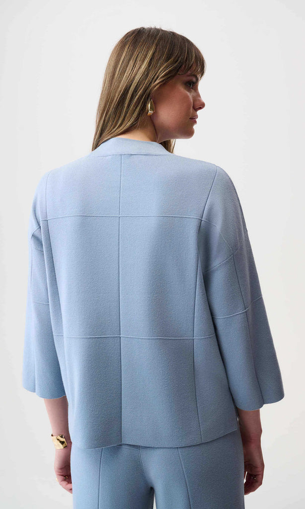 Crafted from brushed viscose blend yarn, this solid jacquard sweater features a textured square stitch pattern. A mock neck and three-quarter dolman sleeves create a relaxed, stylish silhouette, with side slits adding a modern touch to this unlined piece.