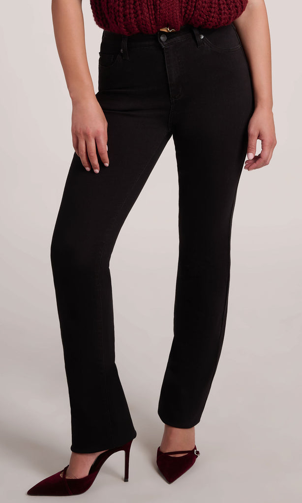 Sleek and versatile, these black straight-leg jeans are a must-have for any wardrobe. Designed with a flattering high-rise waist, they elongate the silhouette while offering a comfortable, secure fit. The clean black wash makes them easy to dress up with heels and blouses or keep casual with sneakers and knits. With their timeless straight-leg cut and classic five-pocket styling, these jeans strike the perfect balance between modern sophistication and everyday wearability.