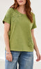 An everyday tee with thoughtful detail. This short sleeve crew neck features tonal floral appliqué accents placed throughout for subtle texture and dimension. Soft and easy to style, it adds interest to denim while keeping the look refined.
