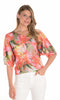 A vibrant expression of effortless charm, this floral dolman top makes a bold and beautiful statement. Crafted in a breezy knit fabric, it features a splashy, painterly floral print that blends pinks, corals, and greens in a luminous palette. The wide dolman sleeves offer a relaxed silhouette, complemented by a ribbed hem that adds subtle structure. Whether paired with crisp white jeans or soft linen pants, this top brings instant color and comfort to your everyday style.
