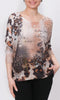 Add a touch of artistic flair to your wardrobe with these lightweight printed tops. Designed with a relaxed silhouette, each piece combines bold animal-inspired patterns with layered floral and graphic accents. Subtle hints of metallic shine elevate the look, giving it a unique, eye-catching finish. The wide neckline and three-quarter sleeves make these tops easy to wear and perfect for pairing with jeans, trousers, or skirts.