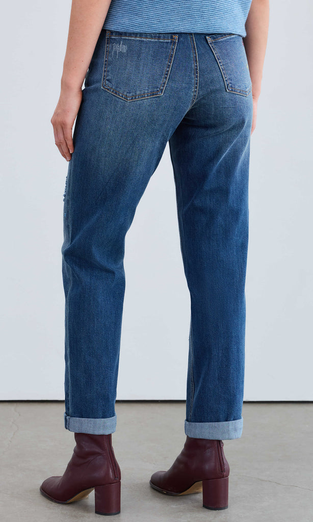These jeans add a playful twist to a classic silhouette with colorful rhinestone embellishments scattered throughout. Designed in a medium blue wash, they feature a relaxed straight-leg fit with subtle fading and light distressing for a lived-in look. The cuffed hem adds a casual finish, making them the perfect pair for adding a touch of sparkle to everyday style.