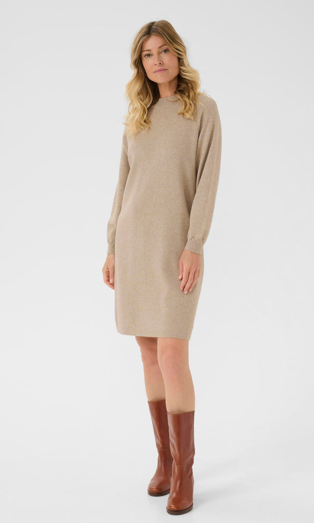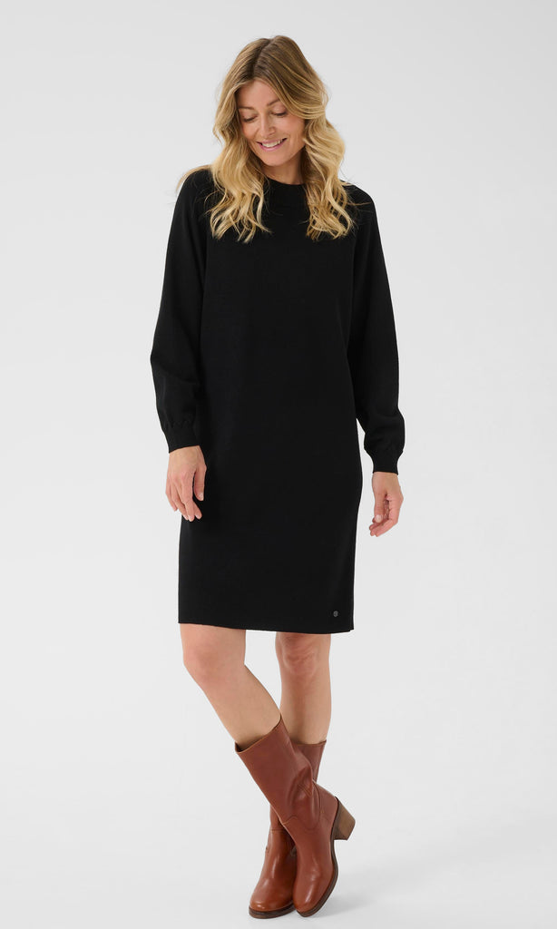 Cozy meets chic in this timeless sweater dress. Crafted from a soft knit, it features a classic crew neckline, long sleeves, and a straight silhouette that flatters without clinging. Ribbed cuffs add subtle detail, while the knee-length cut makes it easy to style with boots or flats. Perfect for both casual days and polished evenings, this versatile dress is an effortless staple for every wardrobe.