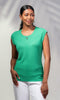 This sleeveless knit top offers effortless sophistication with a touch of modern ease. Crafted from lightweight, breathable fabric, it features a subtle ribbed texture and a sleek, seamless silhouette. The chevron-inspired ribbed detail at the neckline draws the eye upward, enhancing its clean and flattering fit. Finished with wide shoulder coverage and a comfortable banded hem, it's the perfect piece for layering or wearing solo.