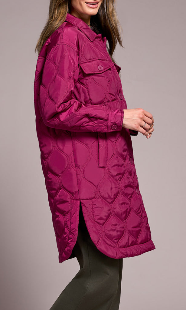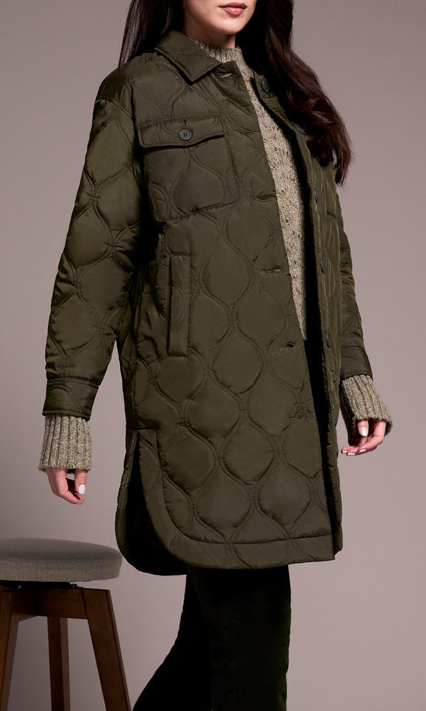 Brave chilly days with style and confidence in our sophisticated button-up jacket, featuring a cozy and stylish quilted design. Featuring timeless details such as a classic collared neckline, laid-back drop-shoulder sleeves, and practical patch pockets on the chest, along with convenient welt pockets at the sides, it effortlessly combines functionality with fashion. With a flattering 39" length, it's the perfect outerwear piece to elevate your cold-weather wardrobe.