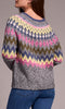 Brighten up your wardrobe with this cozy Fair Intarsia sweater, designed with a playful mix of vibrant hues. The classic crew neck and relaxed fit make it easy to wear, while the colorful zigzag and geometric pattern add a cheerful touch. Crafted in a soft knit, it’s the perfect piece for layering with jeans or casual trousers.