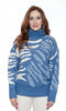 Soft, stylish, and full of personality, this cozy turtleneck sweater features a bold abstract pattern in denim blue and ivory. The relaxed silhouette pairs effortlessly with your favorite jeans or pants, while the ribbed collar, cuffs, and hem provide a flattering finish. A modern twist on classic knitwear that adds texture and charm to any look.
