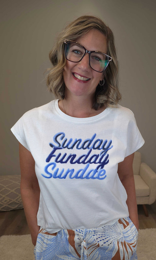 This playful graphic tee brings laid-back charm to everyday styling. Designed with a relaxed fit and soft feel, it features a bold “Sunday Funday Sundae” graphic that adds a fun pop of personality. Easy to wear and effortless to style, this tee pairs perfectly with denim, joggers, or casual skirts for an off-duty look.