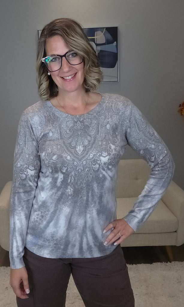 Elegant and easy to wear, this paisley ombre knit top combines soft texture with timeless design. The intricate paisley print flows beautifully into a subtle ombre wash, creating a graceful and flattering effect. Its lightweight knit and relaxed fit make it perfect for everyday sophistication.