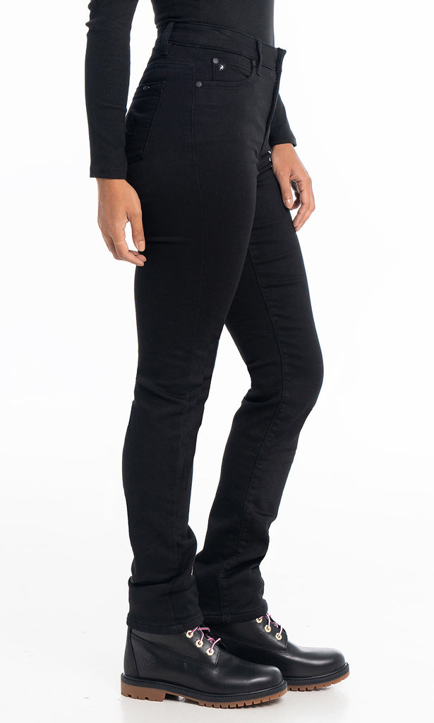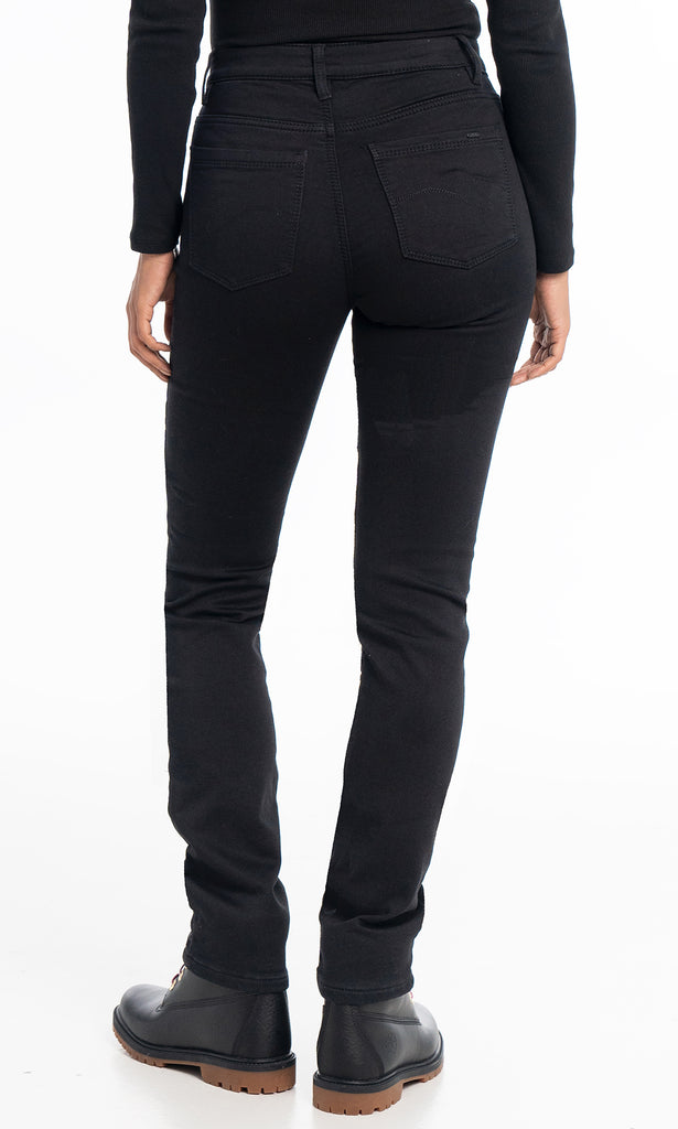 These sleek black jeans offer a timeless silhouette with a modern, figure-flattering fit. Designed with a slim straight leg, they provide just the right amount of stretch for ease and comfort while maintaining their shape. The clean black wash and high-rise design make them a versatile wardrobe staple that transitions effortlessly from casual to dressier looks.