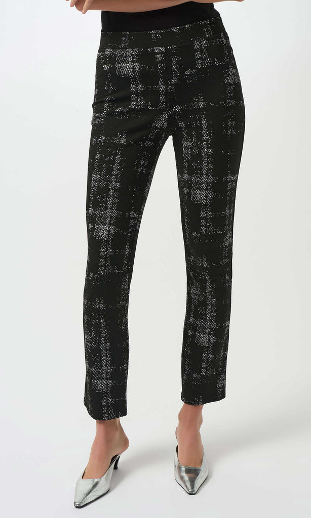 Carry yourself with undeniable poise while wearing these pull-on pants. The piece is designed in a jacquard sweater fabric showcasing a classic plaid print. Seamlessly combining comfort and style, the garment features a covered elastic waistband offering a flattering fit tailored to last from morning meetings to evening cocktails.