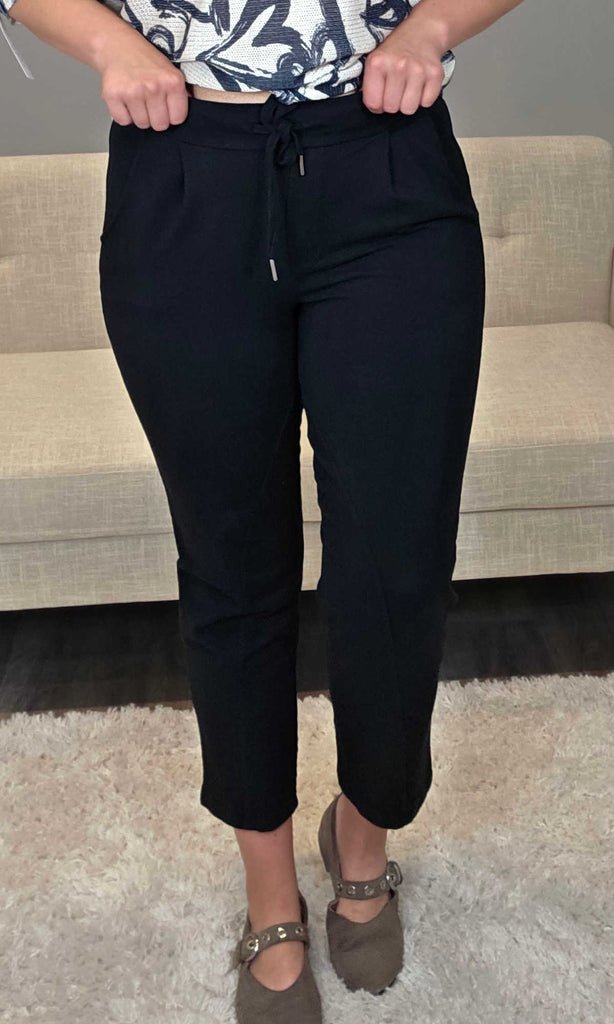 Effortless and polished, these black joggers are the perfect mix of comfort and style. Designed with a drawstring waist, side pockets, and a subtle Yanky pleat at the front, they offer tailored shaping with a relaxed feel. The tapered leg creates a flattering silhouette that’s easy to dress up with a blouse or keep casual with a tee, making them a versatile staple you’ll wear on repeat.