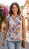 Lightweight, breathable, and beautifully feminine — this sleeveless linen blouse is the perfect warm-weather piece for effortless everyday style. Crafted from a soft natural linen fabric, it features a vintage-inspired floral print with rich, romantic tones that pair easily with denim or neutrals.
