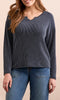 An easy essential with subtle detail, this ribbed knit top is designed with a relaxed fit and everyday versatility. The soft vertical ribbing creates texture and movement, while the notched neckline adds a touch of casual charm. Finished with long sleeves and a straight hem, it’s perfect for pairing with denim, trousers, or layered under a jacket.