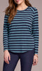 Elevate your everyday style with this crewneck top, designed with a flattering stripe pattern. Long sleeves provide cozy coverage, and the curved hem adds a touch of modern shape. Crafted from soft slub knit fabric, it offers both comfort and relaxed style.
