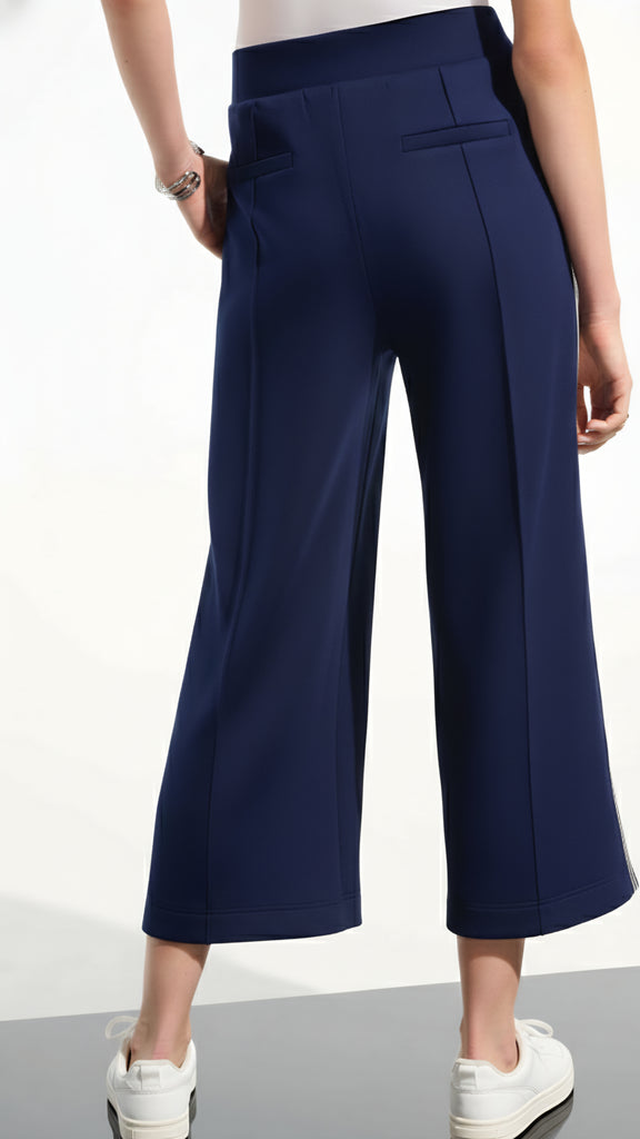 A sporty twist on a soft culotte shape, these scuba jersey pants feature side stripe rib trim and clean welt-style details. The elastic waistband with gentle shirring keeps the fit relaxed yet refined.