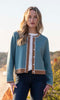 This button-front cardigan blends classic style with a modern twist. Designed in a soft teal hue, it’s framed with tan and white contrast trim for a chic, tailored look. The cropped silhouette makes it easy to pair with high-rise denim or skirts, while the lightweight knit offers all-day comfort. A versatile layering piece that transitions seamlessly from casual to polished.
