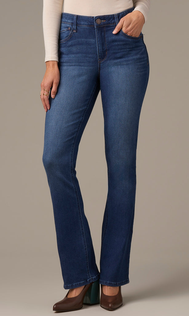 Step into everyday elegance with these light indigo Brittany bootcut jeans. Designed with a flattering mid-to-high rise and subtle fading, they deliver a streamlined look with just the right amount of stretch for comfort. The bootcut leg balances proportions, making them an ideal match for both casual flats and heeled boots.